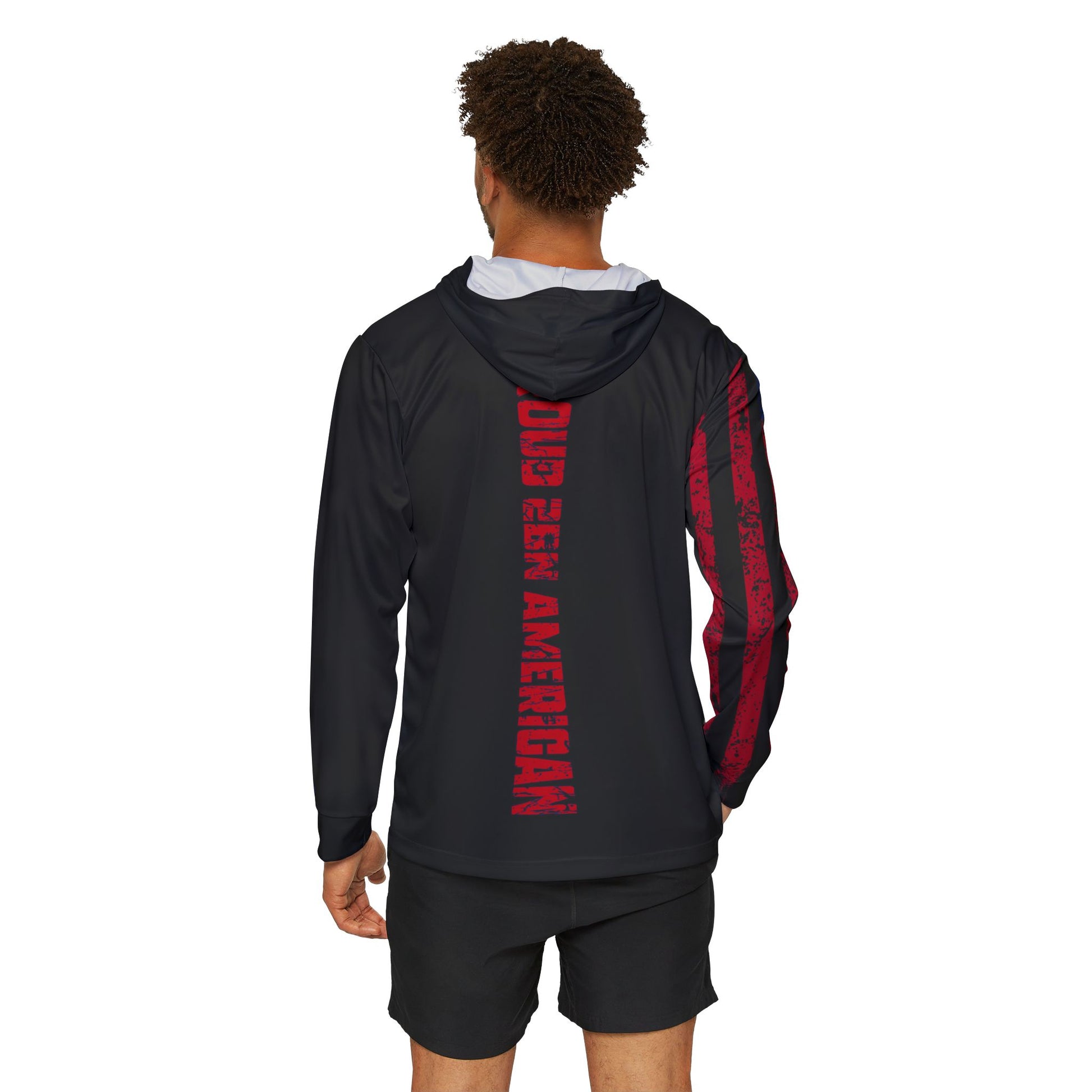 Show your patriotism with this Men's Sports Warmup Hoodie featuring 'In God We Trust and Proud to be an American' design. Perfect for any physical activity, this moisture-wicking hoodie keeps you cool and dry. Ideal for those who love sports or outdoor activities, especially relevant for Fourth of July celebrations and patriotic holidays.